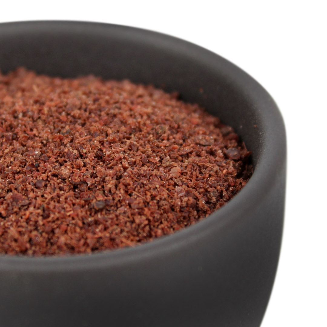 Sumac to 100% czysty, zmielony sumak o pięknej, burgundowej barwie i niezwykle złożonym smaku.